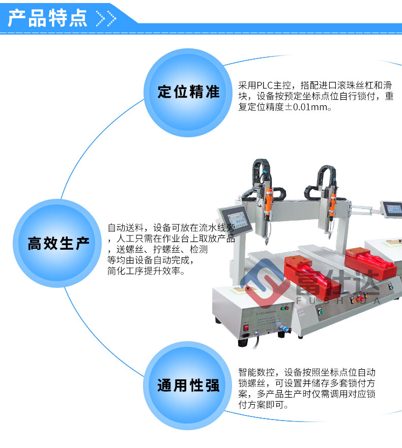深圳市富仕達自動化設備有限公司是國內領先的以自動鎖螺絲設備為核心的自動化設備制造商,堅持以客戶需求為中心,定制自動化鎖螺絲方案,已有超過9000家企業(yè)采用富仕達定制的自動鎖螺絲設備實現“機器換人”,節(jié)省大量人力成本。