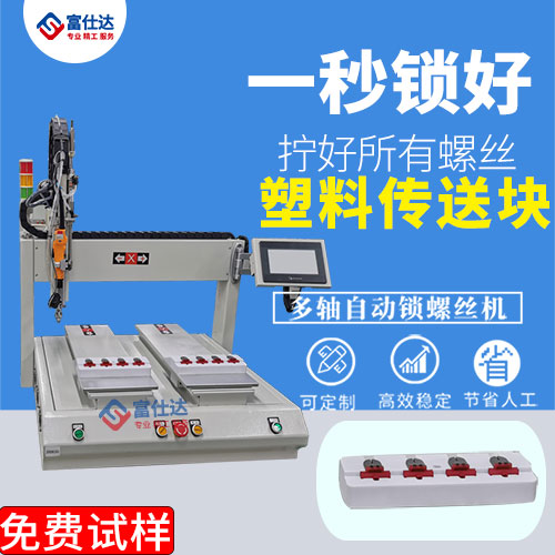 塑料傳送塊表鎖螺絲設(shè)備,產(chǎn)品是產(chǎn)品是用在工廠里面的設(shè)備上 正面有4顆螺絲需要緊固,背面也通過(guò)4顆螺絲緊固,